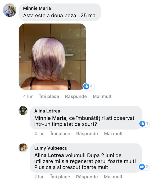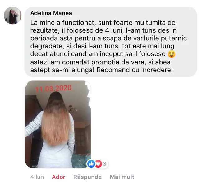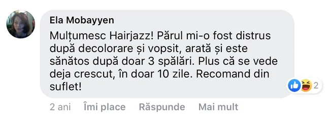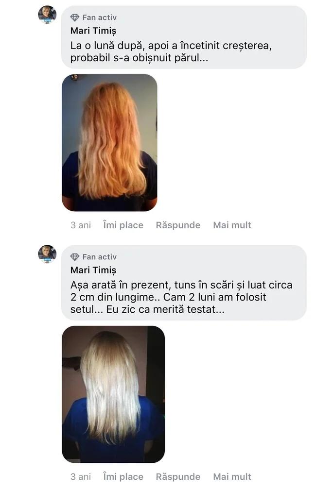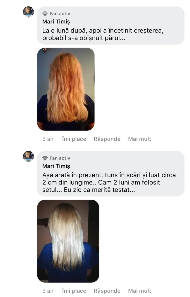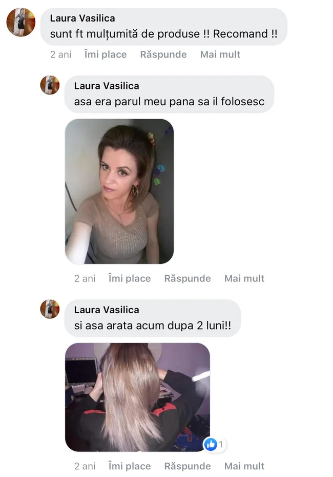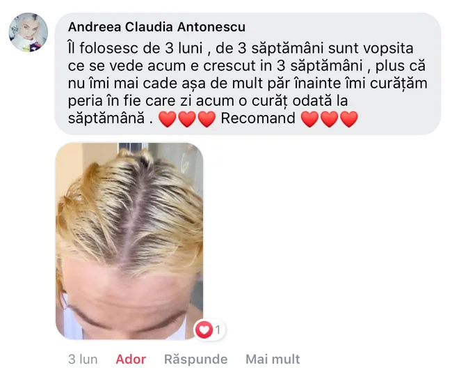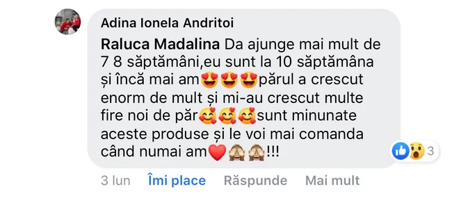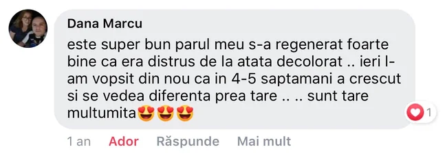 Sunt foarte mulțumită de aceste produse având in vedere ca in 3 decolorari și parul creste și bineînțeles mult baby hair.
