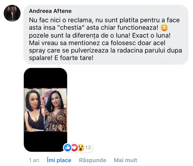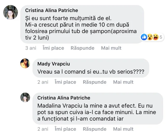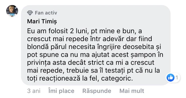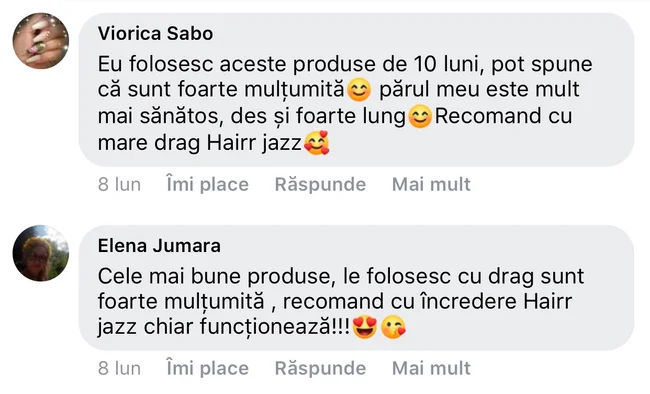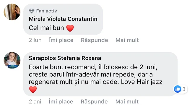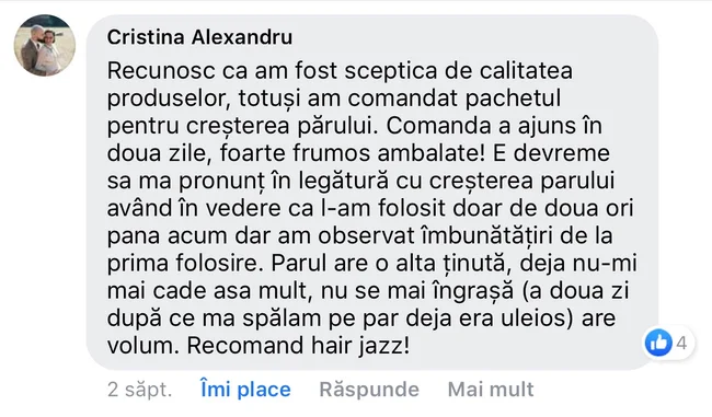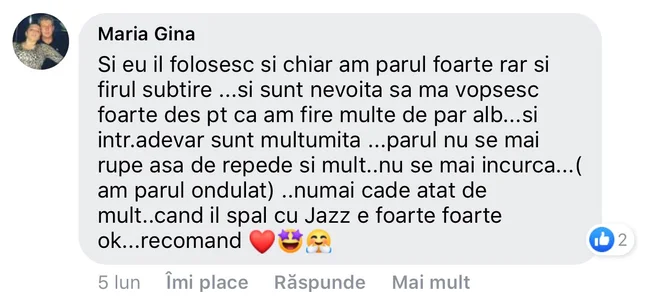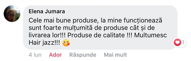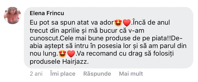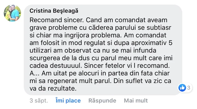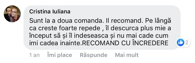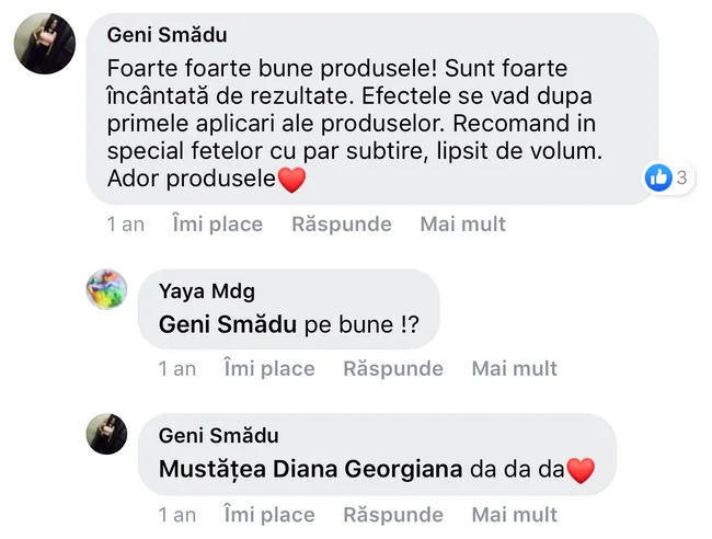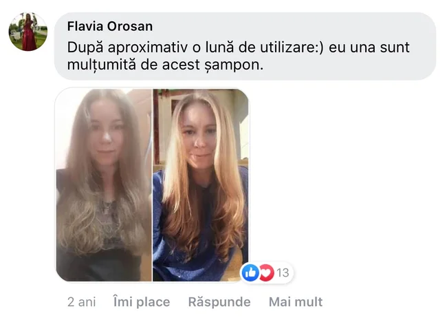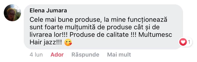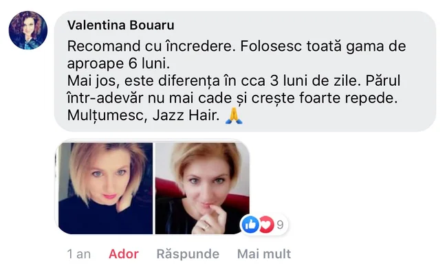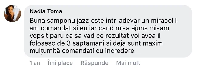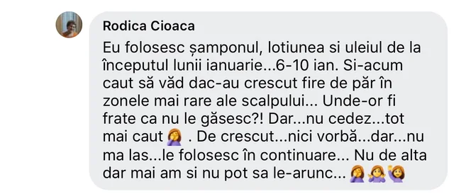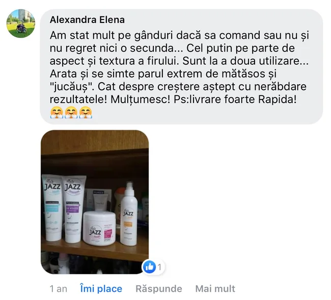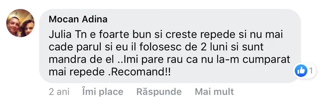 Am un an de când folosesc acestea produse și vreau să spun că sunt extraordinare! Am făcut o pauză cam mare, din cauze financiare nu mi-am mai permis să cumpăr, dar diferența este enormă. Am încercat mai multe șampoane, îmi pica părul la greu. Am dat comandă doar pentru șampon și abia aștept să vină comanda. Sunt extraordinare aceste produse. Le recomand cu drag și încredere!