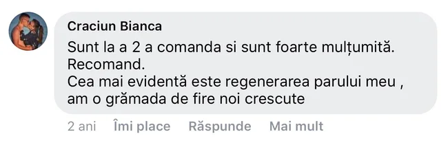 À 3a comanda. Sunt mulțumită cel mai mult ca mi-a regenerat parul.