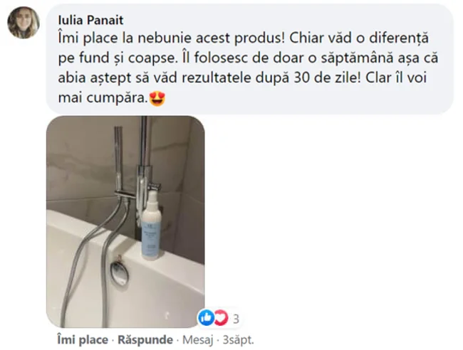 E foarte bun produsul în mai puțin de 2 săptămâni se vad rezultatele. Eu îl folosesc după baie. Sunt foarte bune produsele de la Hair jazz ca să vezi rezultatele trebuie respectat tratamentul.